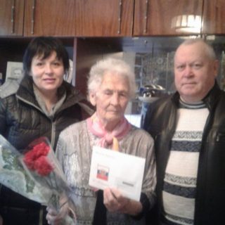В этот знаменательный день поздравить ветерана приехали специалист по социальной работе отделения № 4 социального обслуживания на дому Комплексного центра социального обслуживания граждан пожилого возраста и инвалидов Керчи Маргарита Сычук